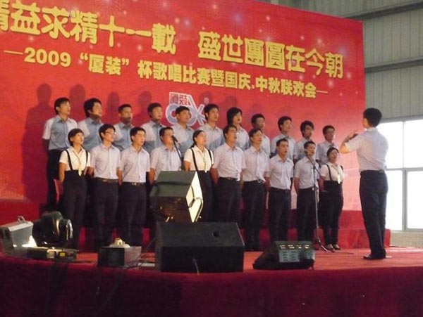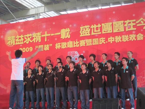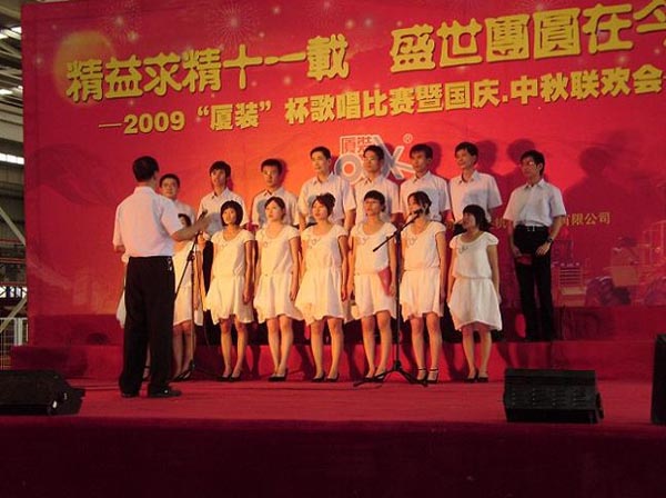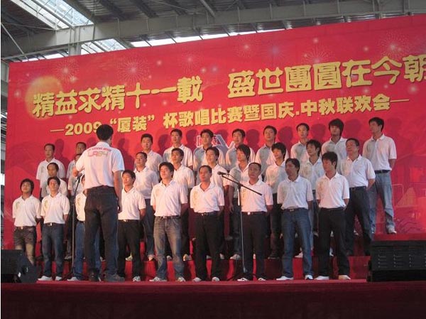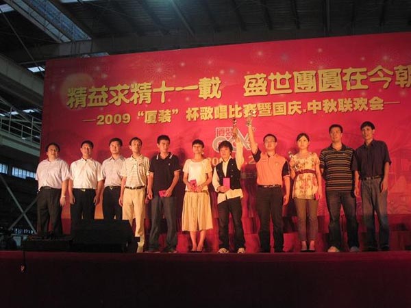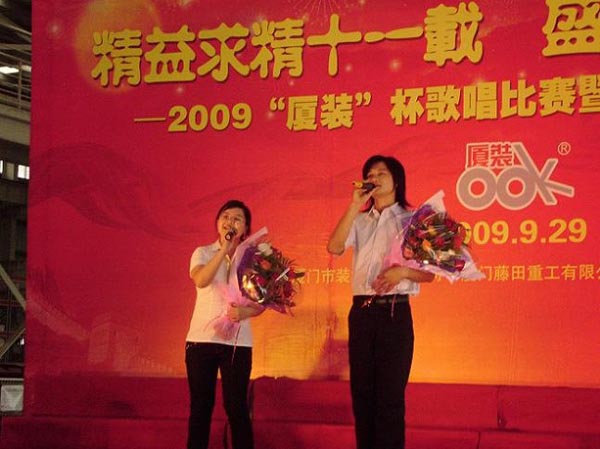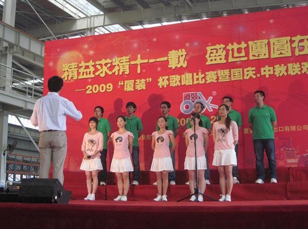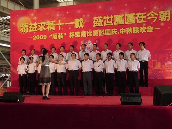9月29日下午,2009年度“廈裝杯”歌唱比賽在廈裝公司總裝車(chē)間舉行。此次歌唱比賽以“精益求精十一載、盛世團圓在今朝”為主題,賀祖國60周年華誕、喜迎中秋、慶祝廈裝成立11周年。公司及各部門(mén)從6月份開(kāi)始籌備此次比賽,此次比賽分為集體組和個(gè)人組,集體組(合唱)以部門(mén)為單位,最終有6支隊進(jìn)入當天的決賽,個(gè)人組通過(guò)先前的部門(mén)推薦及預賽選拔,最終有11人闖入決賽。