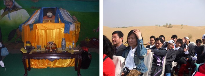 中午我們進(jìn)入了旅游區蒙古包樣式的餐廳用餐,享受蒙古歌舞。用餐完畢后我們繼續我們愉快的旅程前往成吉思汗陵。