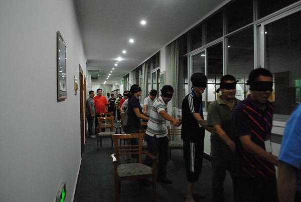 黑暗中學(xué)員手拉手,團結互助向前走