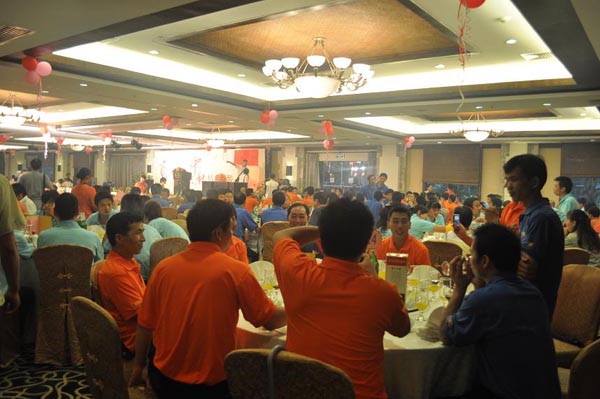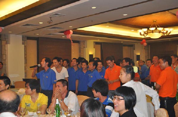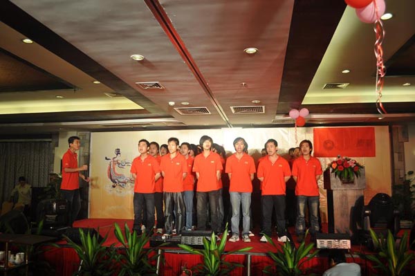 我司每年都會(huì )組織全體員工舉行這一活動(dòng),而今年恰逢公司新標志的發(fā)布,更是加入許多精彩節目!不僅有傳統的晚宴、博餅,更是邀請專(zhuān)業(yè)的演出公司表演精彩的節目,還有員工自行組織的拉歌活動(dòng)。節目進(jìn)行當中,另有抽獎環(huán)節!總之,就是要讓員工在節日里紅上加紅,喜上加喜!