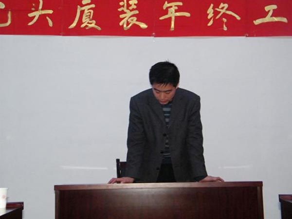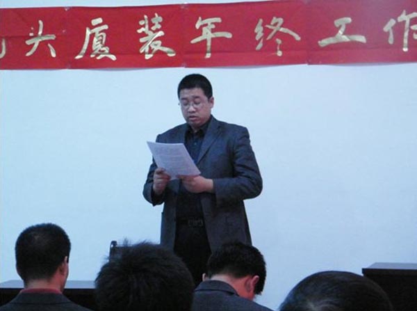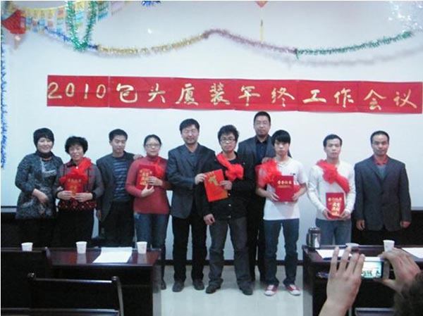 隨著(zhù)新年鐘聲的臨近,我司于2010年12月31日,下午13:30分在公司三樓會(huì )議室召開(kāi)了2010年年終工作總結及優(yōu)秀員工表彰大會(huì )。此次會(huì )議目的既是讓大家對公司成立以來(lái)的熬人業(yè)績(jì)、明年的整體發(fā)展趨勢、任務(wù)指標,以及公司對每位職工工作的肯定做了一一講解。營(yíng)造全體員工團結凝聚、以廠(chǎng)為家、共同奮進(jìn)的氛圍,回顧過(guò)去我司做出了當年建廠(chǎng)、當年投產(chǎn)、當年銷(xiāo)售的令人矚目成就。通過(guò)此次會(huì )議,公司全體同仁堅信在大家共同努力下,我司產(chǎn)品必能遍布內蒙古中西部及陜北地區,并且在所有同行當中永居鰲頭,成為全內蒙、全國、全世界第一品牌。